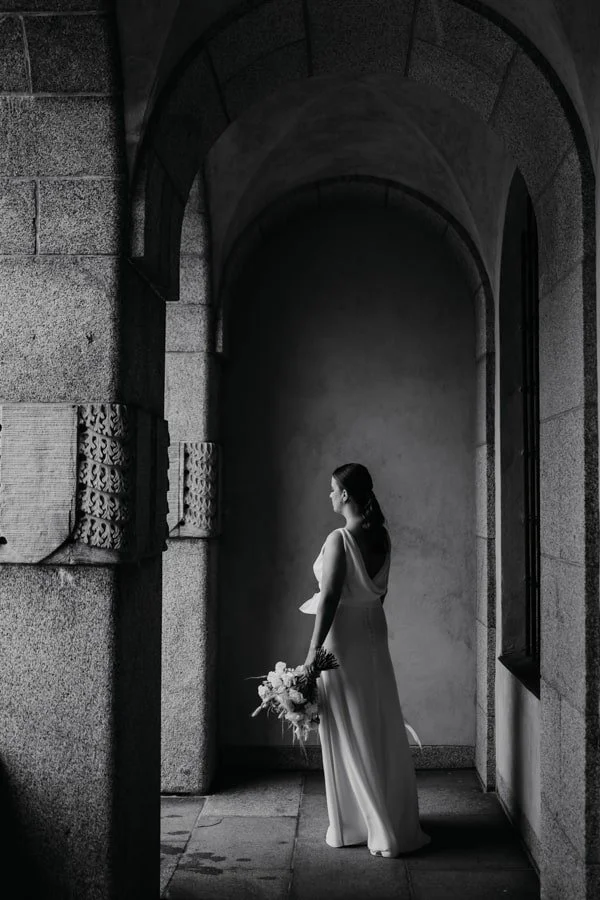 Nämä tyylikkäät ja elegantit hääpotretit kuvasimme Helsingin keskustassa. Helsingin upeat vanhat rakennukset, värikkäät kadut ja porttikongit ovat upeita kuvauspaikkoja hääkuville. Tässä hääparin tyyli ja kuvauslokaatio kohtaavat todella! Haluankin aina selvittää hääparin tyylin, sekä nähdä kuvia hääpuvuista jotta voin valita jokaiselle hääparille parhaan kuvauspaikan. Morsiamen elegantti ja tyylikäs hääpuku yhdistettynä vaaleaan hääkimppuun, sulhasen puku ja tämä holvikaari kuvauspaikkana luovat ajattoman tyylin hääkuville.